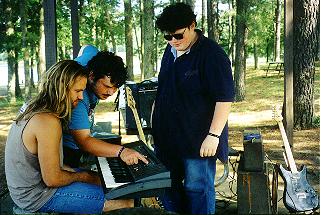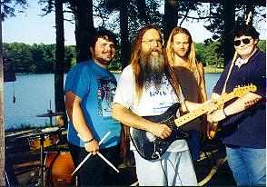 Now the 79 Cougar is a large car with a small trunk (if you put the bass drum in, the trunk won't close) and we had a gig at the park. So we took some of the stuff and most of the people and then I went back on a second trip for the rest of the stuff and Kier. One of the filters started to clog and we had a little trouble making a few hills but the car made it, we played our gig, had a great time, shot video, and raised a few bucks for the bandshell. |