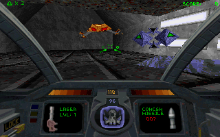 Descent is a cross between Doom and a Flight Simulator. It has the same 3d feel as Doom, but with multiple floors on a level, and you can pull up, down, roll, and all the other manuvers expected from a flight sim. It also offers over 10 weapons in the shareware version alone, and at least 7 kinds of enemies (Yes I admit it, I, the master of all games still haven't beat Descent and all of its terrors!). Descent also gives you the feature to record your own demos, and capture screen shots while playing the game!
